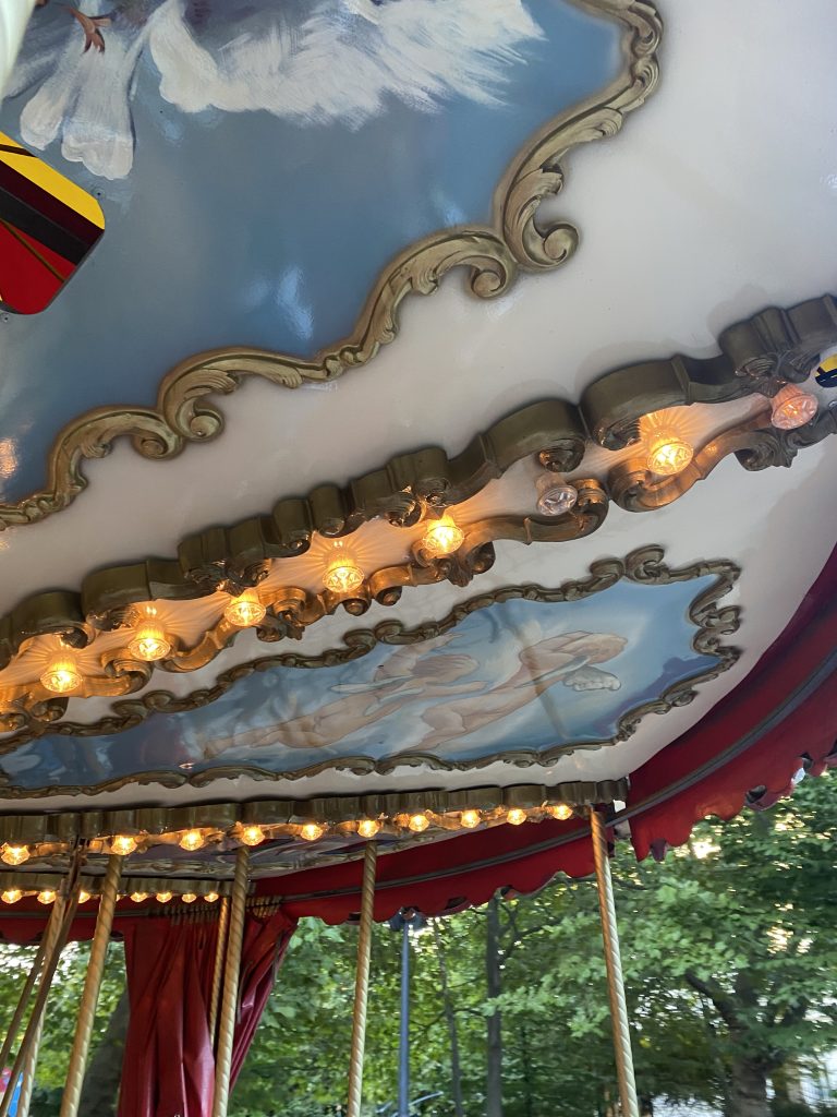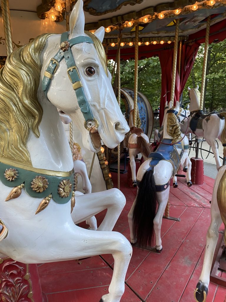 We wrocławskim Parku Staromiejskim kryje się skarb! Elektryczna karuzela w stylu francuskim, stylizowana na XIX wiek. Jeden przejazd kosztuje 3 zł, trwa około 3 minut i daje dużo radości. Można usiąść na ruchomych (bądź nieruchomych) koniach lub w gondolach, a z zewnątrz – podziwiać wrocławskie zabytki namalowane na górze karuzeli.