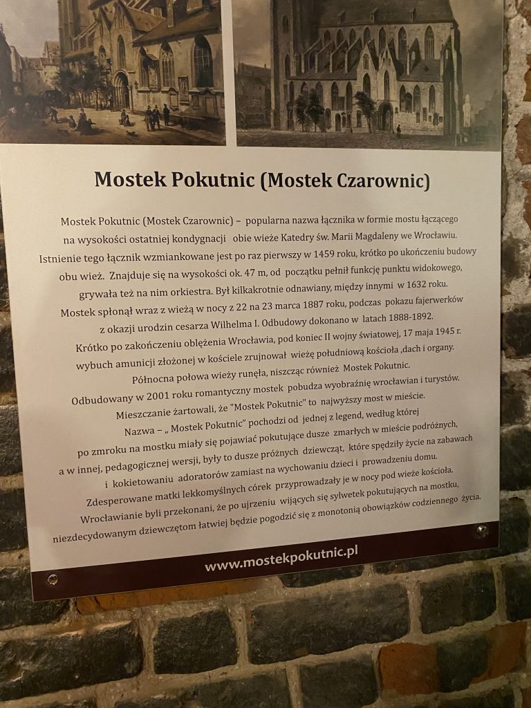 Katedra św. Marii Magdaleny mieści się w centrum Wrocławia. Jej dwie wieże łączy mostek na wysokości ok. 47 m. Wejście jest płatne (cennik poniżej), a atrakcja jest czynna w godzinach 10-19.