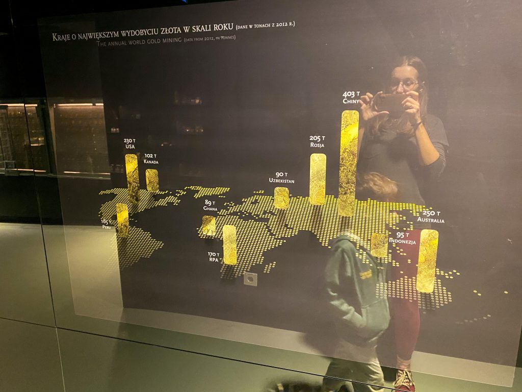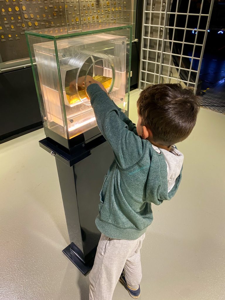 - Możliwość dotknięcia sztabki złota i sprawdzenia jej wagi,