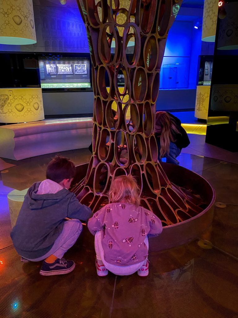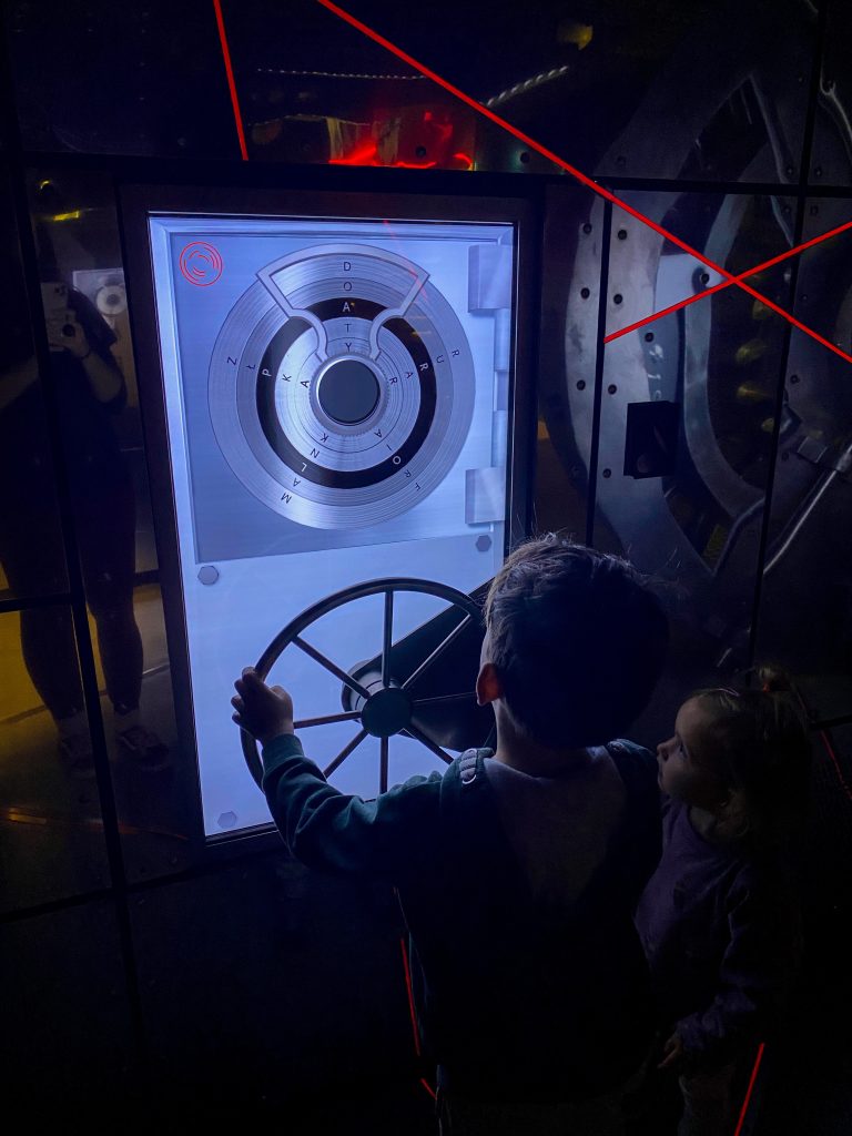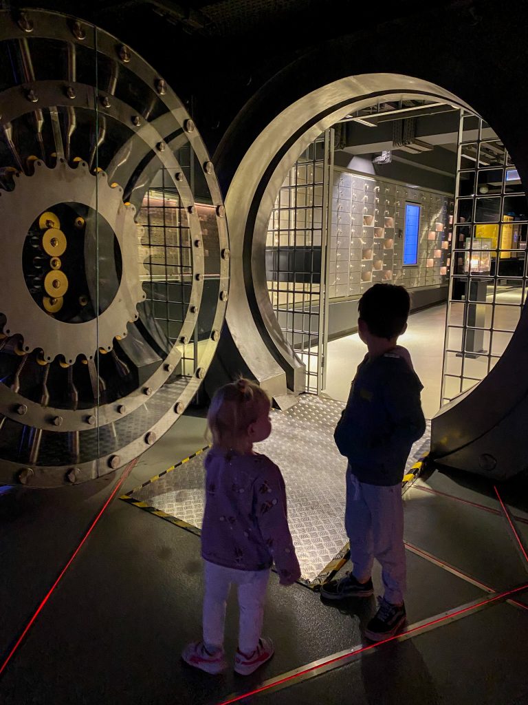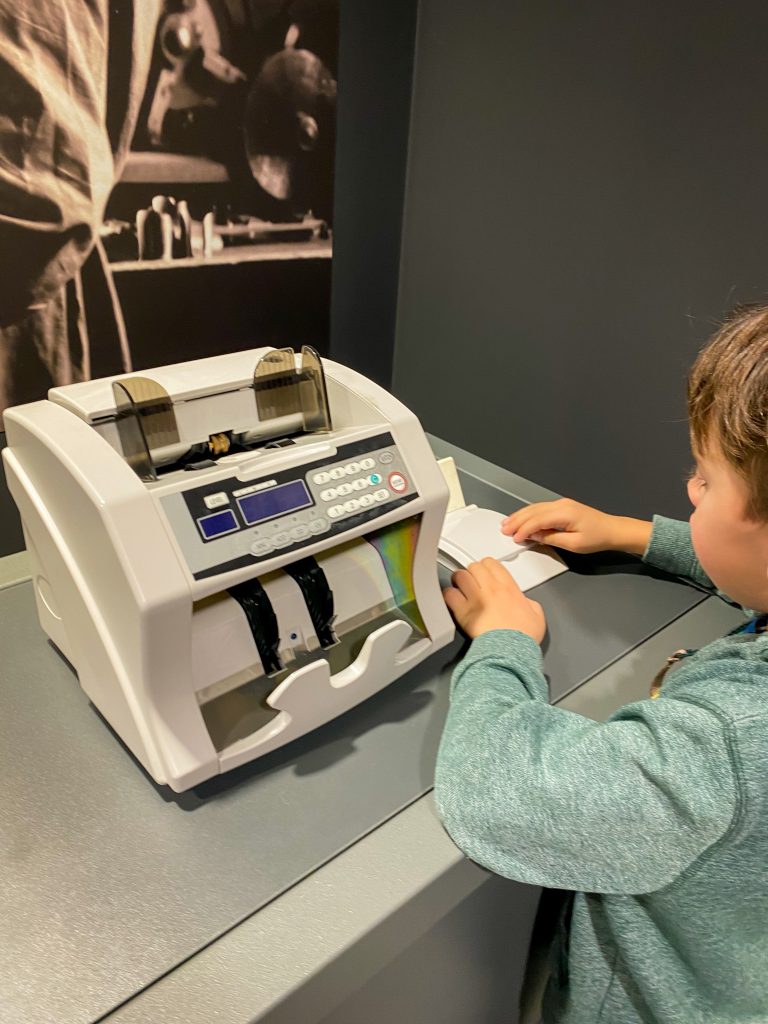 Centrum Pieniądza nie jest atrakcją dedykowaną wyłącznie dzieciom. To miejsce dla każdego, dla dorosłych szczególnie. W moim odczuciu im starsze dzieci, tym lepiej – więcej skorzystają. Byłam z sześciolatkiem i dwulatką – osobiście uważam, że to nie miejsce dla dwuletnich maluchów, chociaż dwie godziny dała radę i co mogła to wciskała, albo wciskałam za nią. Jednak chyba nie o takie korzystanie się rozchodzi 😉