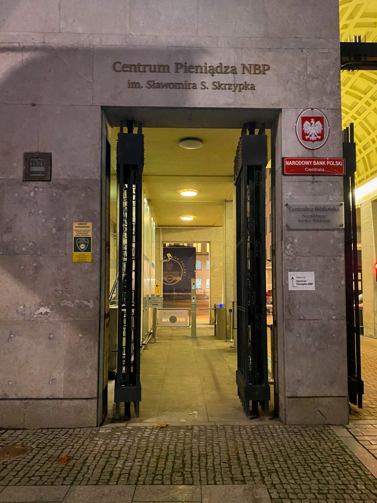 Miejsce ma odrobinę nieoczywiste wejście. Trzeba przejść wzdłuż budynku NBP i jedna z bram od ulicy Świętokrzyskiej to wejście do Centrum Pieniądza. Aby dostać się do środka trzeba pokonać kilka schodów. Nie zauważyłam windy, byłam z wózkiem i, zarówno wchodząc, jak i wychodząc, znosiłam wózek na rękach. Gdybyście wiedzieli coś o windzie na wejściu, dajcie znać proszę, edytuję wpis.