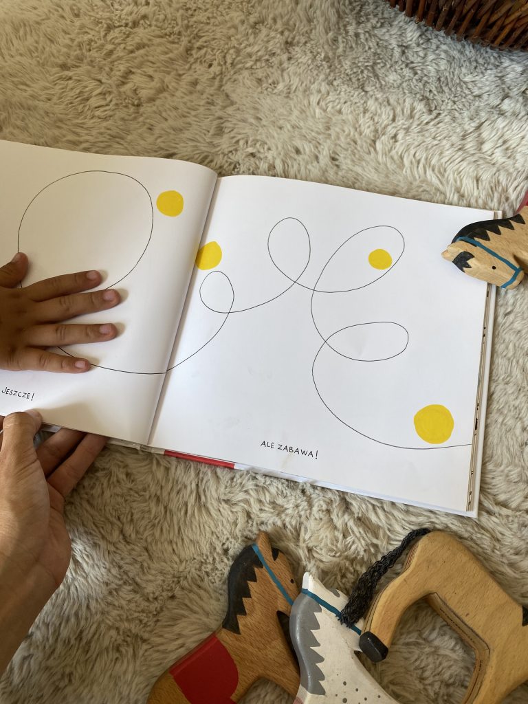 W tej części znajdziecie też milusi dywan, mnóstwo książek o sztuce lub ze sztuką w tle. Zarówno dla maluchów, które będą dotykać kropek na kartkach, jak i dla starszych, którzy przyswoją więcej treści.