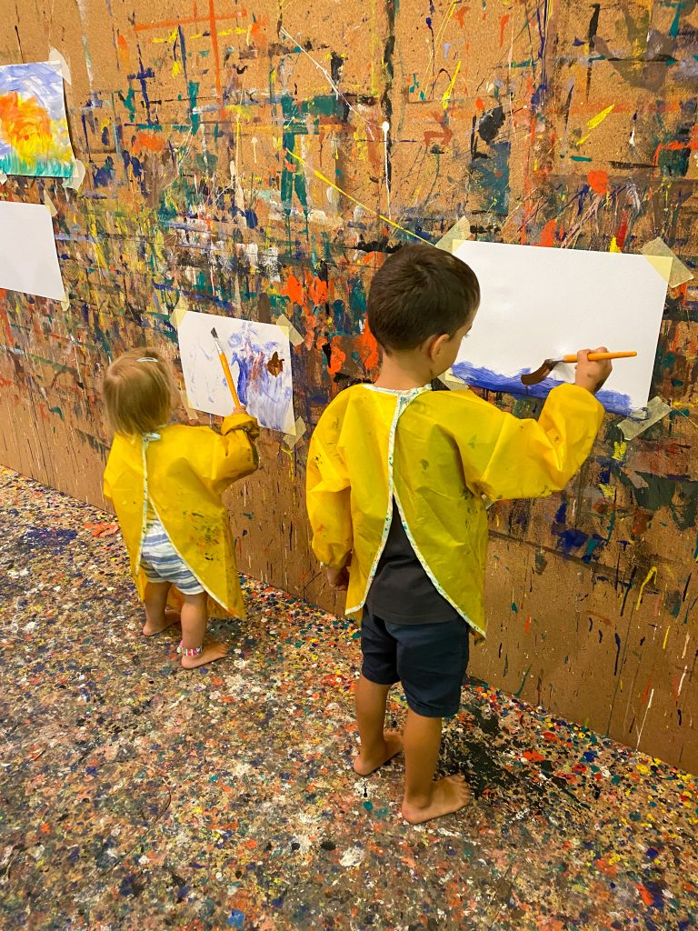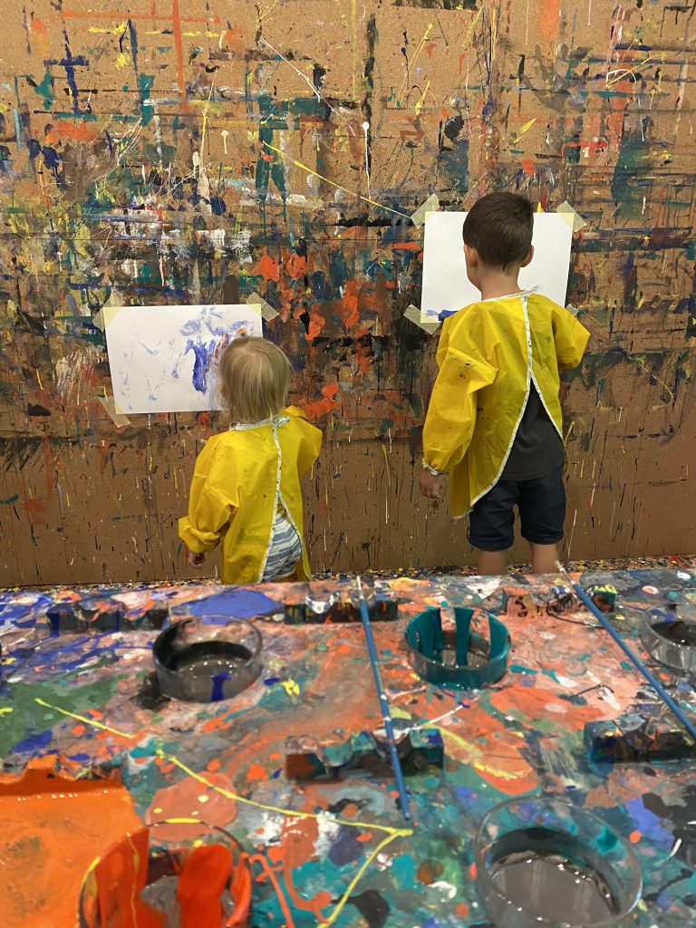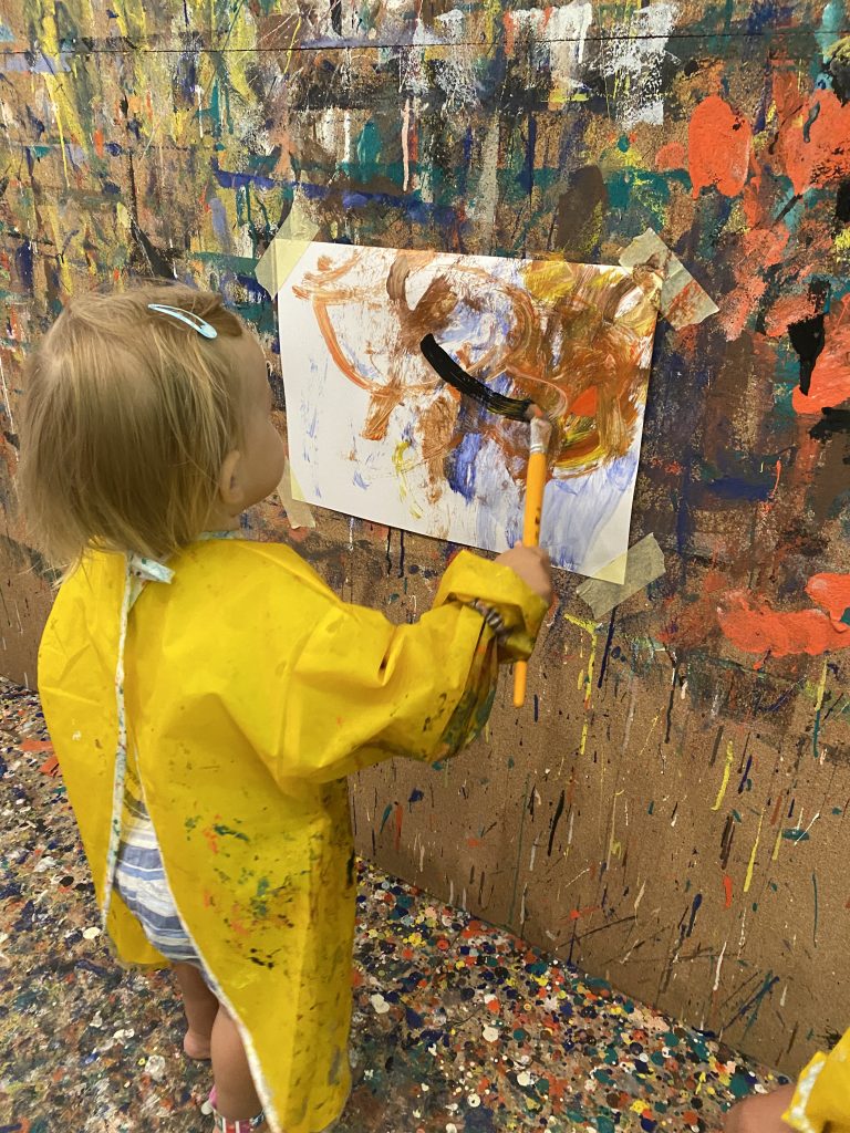 Teraz przyszedł czas na malarstwo w praktyce. Wyposażeni w dziecięce fartuchy, dobre pędzle, świetne kartki i farby (oj, to ma znaczenie!), zaczniecie tworzyć własne dzieła sztuki. Nie bójcie się pobrudzić, tuż obok jest toaleta z podnóżkiem dla dzieci.