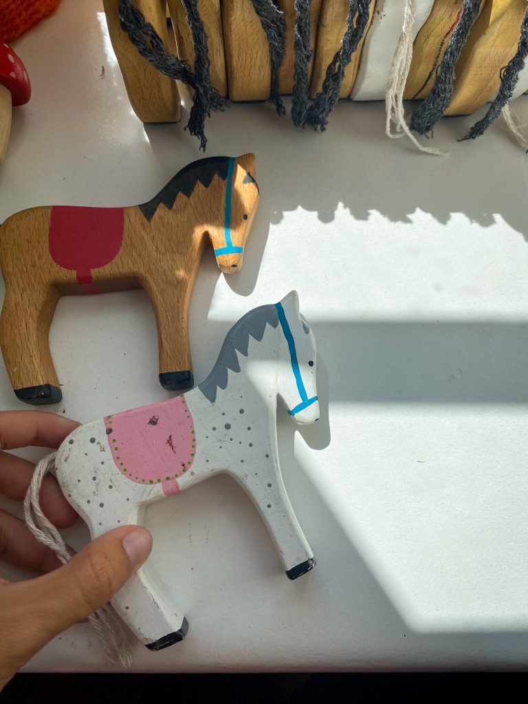 Skoro koń na obrazie, to i koni w sali nie brakuje. Od drewnianych koni na biegunach (dla niektórych dzieci, np. moich, to pierwsze zetknięcie z taką zabawką!), po urocze koniki do zabawy wraz klockami i autami. Wszystko w jakości i estetyce top top top🙌🏻