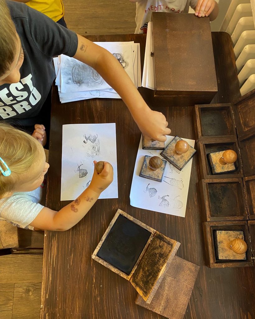 Kończąc swoje zachwyty, nadmienię, że nie opisałam wszystkiego. Po drodze będziecie pieczętować jak za dawnych czasów, są też sensoryczne kolorowe płytki do skakania, coś do posłuchania i do przebrania się, jakbyście byli na obrazie Rembrandta. Jest nawet miejsce, przy którym możecie stworzyć własne pacynki lub cokolwiek innego przyjdzie Wam do głowy. Materiały, sznurki, kleje, ozdoby, wypełnienia są na wyposażeniu. Organizacja i wszechstronność tego miejsca to najwyższa kategoria🤩🙌🏻