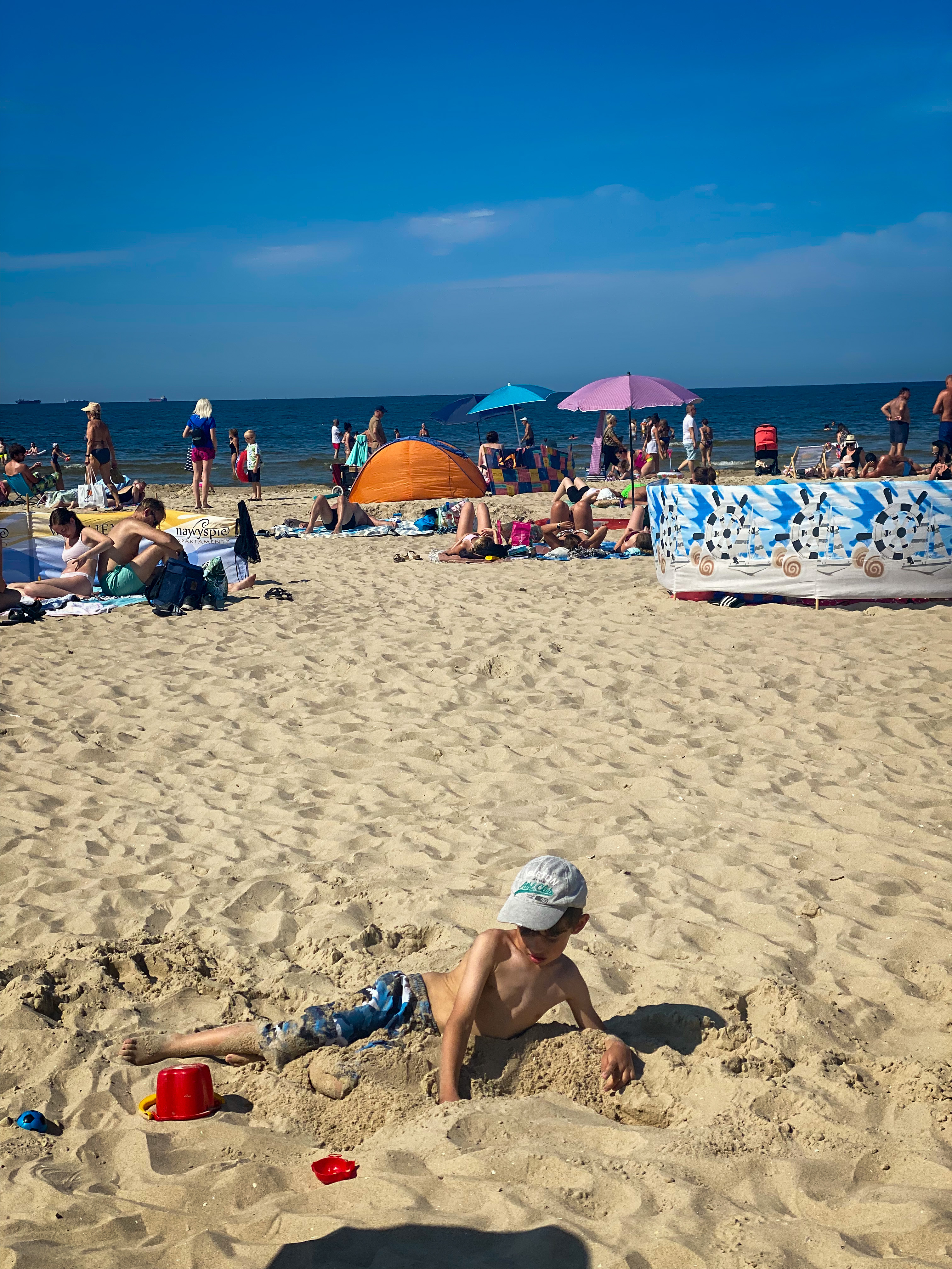 Plaża w Świnoujściu jest naprawdę wspaniała. Niezwykle rozległa i z fantastycznym piaskiem. Podzielę się z Wami swoim trickiem – idąc na plażę zabieram u-lock rowerowy (każdy łańcuch do przypinania da rade), przypinam wszystkie dziecięce sprzęty przed wejściem na plażę i już! Nie muszę martwić się noszeniem ich ze sobą (w szczególności po świnoujskiej plaży, a uwierzcie mi, jest wieeeelka). Polecam:)