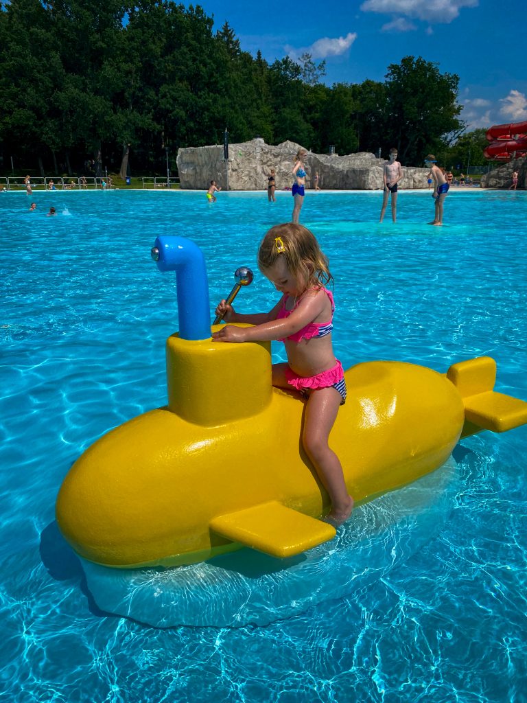 Zacznijmy od basenów (choć nie są jedyną atrakcją tego miejsca). Baaaaardzo duży basen dla dzieci, płytki – 20 cm. Następne są nieco głębsze 60 cm i 90 cm. Ten pierwszy obejmuje naprawdę spory obszar i jest urozmaicony elementami typu fontanny, zjeżdżalnie, wyspa itd.